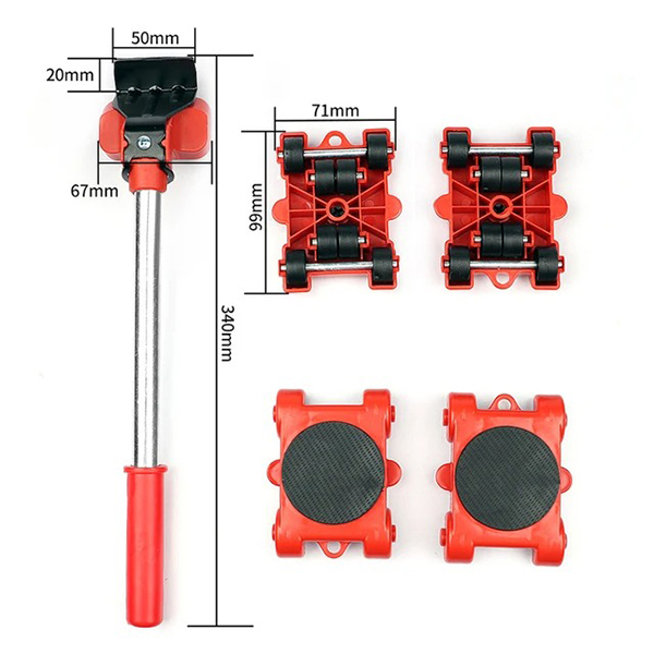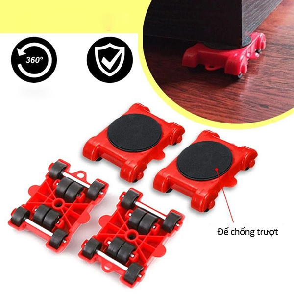 - Bộ sản phẩm bao gồm một tay nâng và hệ 4 con lăn, có khả năng di chuyển đồ dùng với cân nặng có thể lên tới 100kg một cách dễ dàng.