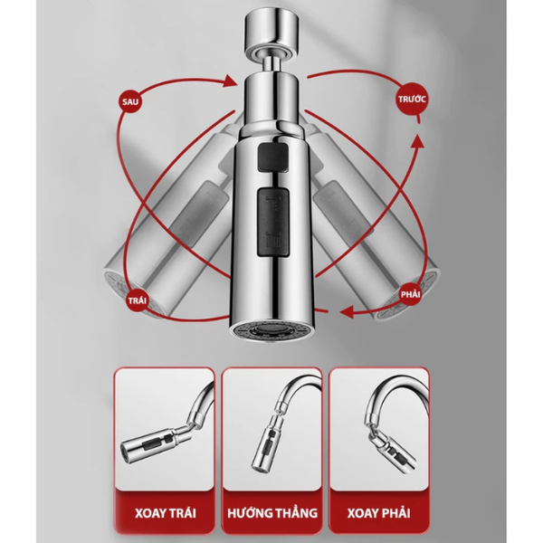 Đầu vòi rửa bát tăng áp chống văng nước xoay đa hướng tiện dụng là giải pháp hoàn hảo giúp bạn nâng cấp không gian bếp hiện đại. Với thiết kế sang trọng, nhỏ gọn và tích hợp 3 chế độ phun nước linh hoạt, sản phẩm giúp bạn rửa bát, rau củ, xoong nồi nhanh chóng hơn mà vẫn tiết kiệm nước.