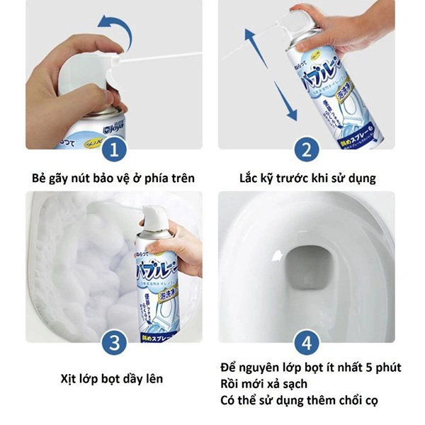 - Phun trực tiếp lên khu vực bám bẩn (bếp ga, bồn cầu, gạch men, lavabo…).