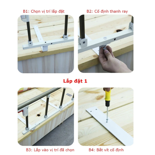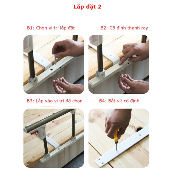 - Cố định thanh chắn vào khung giường theo hướng dẫn.
