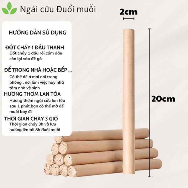 Sản phẩm: Set 50 thanh nhang ngải cứu kèm đế gỗ đuổi muỗi khử mùi cho gia đình